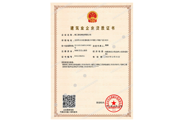 戴工建設(shè)集團(tuán)有限公司,創(chuàng)建于2009年,注冊資本9888萬元人民幣。公司位于北京市大興區(qū)。具有建委頒發(fā)的建筑裝飾裝修專業(yè)壹級,防水保溫工程專業(yè)壹級,建筑幕墻專業(yè)貳級,消防設(shè)施專業(yè)貳級,電子與智能化專業(yè)貳級,特種工程(結(jié)構(gòu)補(bǔ)強(qiáng))專業(yè)不分等級,建筑機(jī)電安裝專業(yè)貳級,環(huán)保工程專業(yè)貳級,鋼結(jié)構(gòu)專業(yè)貳級,建筑工程總承包貳級,建筑裝飾工程設(shè)計專項甲級,展覽陳列工程設(shè)計與施工壹級,展覽展示工程壹級...更多>>